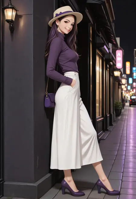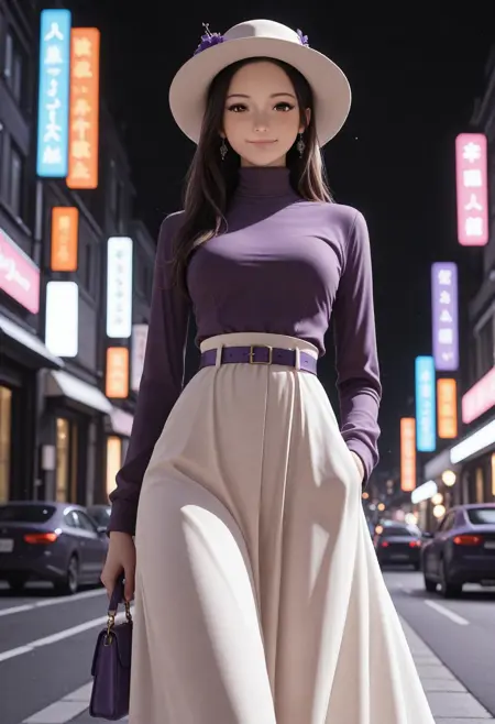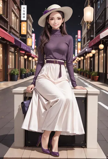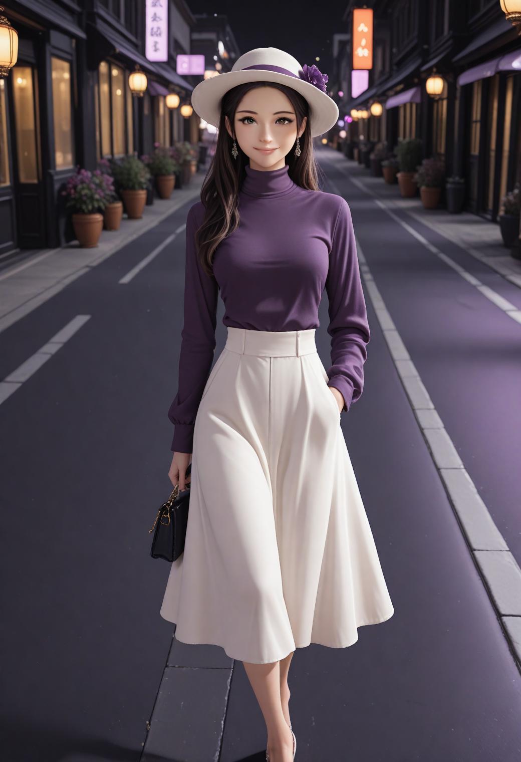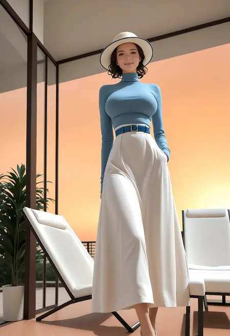 D042 Elegant Dress with Turtleneck Shirt, White Skirt, & Hat
