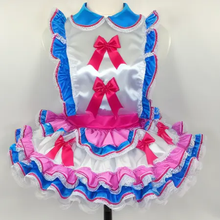 | 训练词汇 | white, blue, and hot pink short lace-trimmed shiny satin puffy dress, blue peter pan collar, magenta chest ribbons, white lace-trimmed puffy short sleeves, blue and hot pink-trimmed (lace-trimmed suspender_straps), magenta waistband, magenta waist ribbons, white, pink, and blue ((short attached lace-trimmed layered dress_skirt)), pink ruffles, blue frills, white lace, white lace trim, pink and blue lace-trimmed short waist apron, bows, magenta bows已复制! |