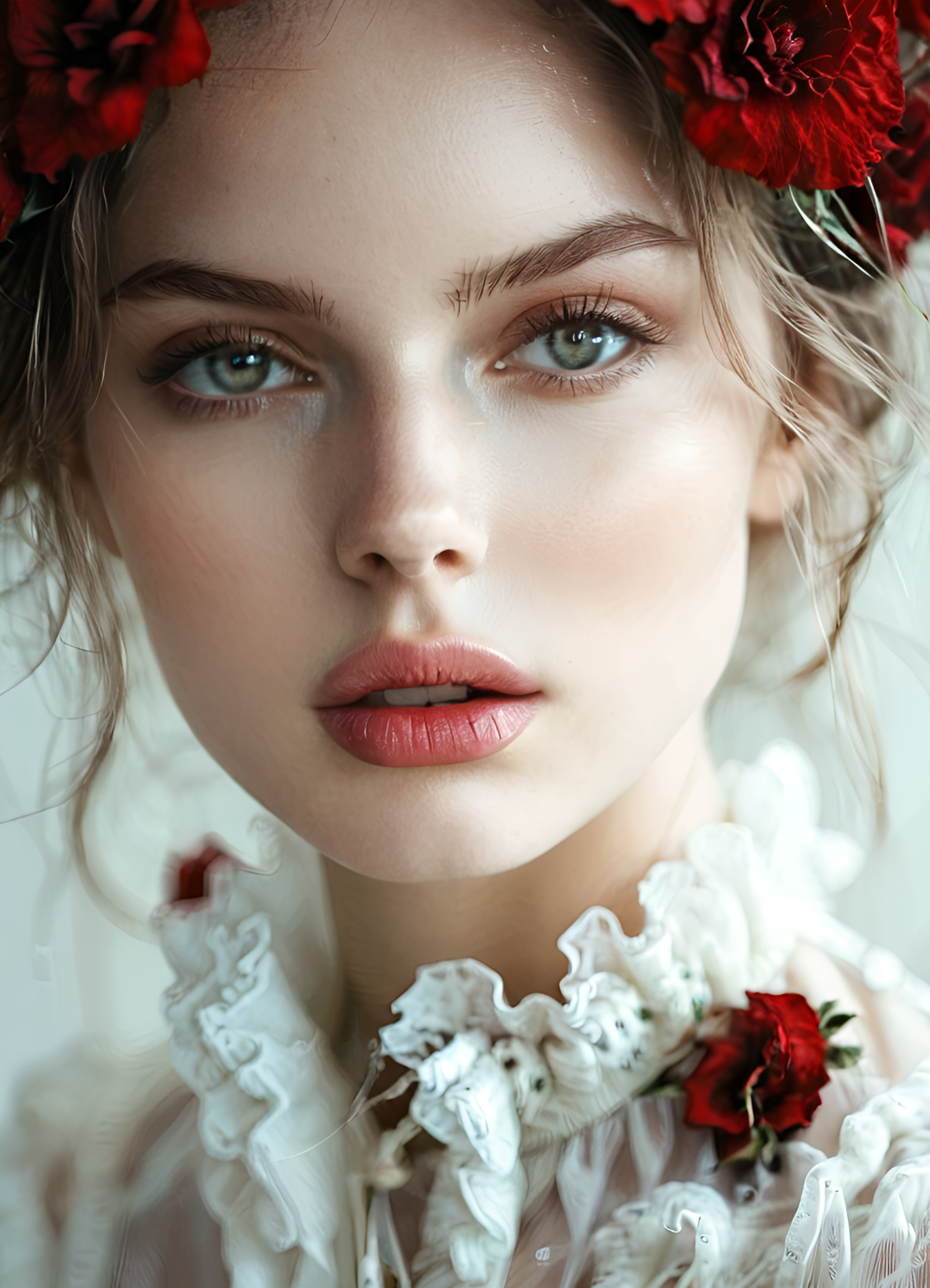 photorealistic portrait of a woman, lora:eye\_concept:0.6, cinematic lighting, highly detailed emerald green eyes, sharp iris texture