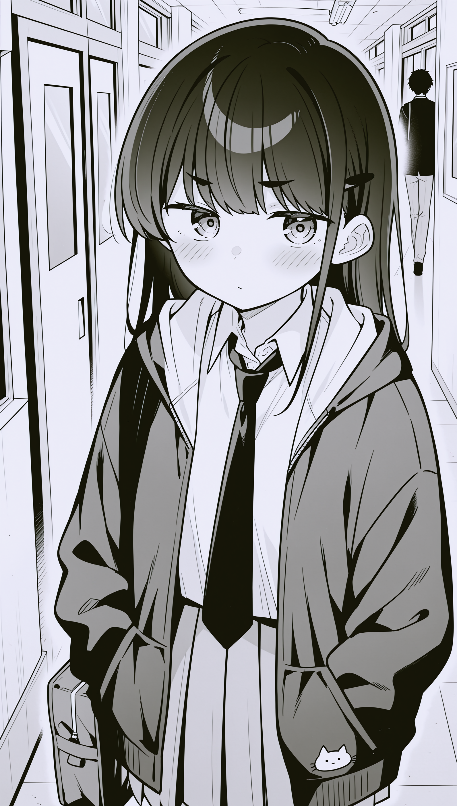 • long sleeves, school uniform, jacket, pleated skirt, necktie, collared shirt, open jacket