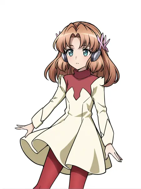 衣服3(clothes3):medium hair,butterfly hair ornament,red pantyhose,red turtleneck, sleeveless dress, high heels,