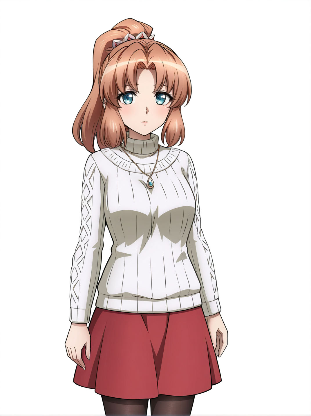 衣服4(clothes4):scrunchie,red skirt, black pantyhose,white sweater,necklace