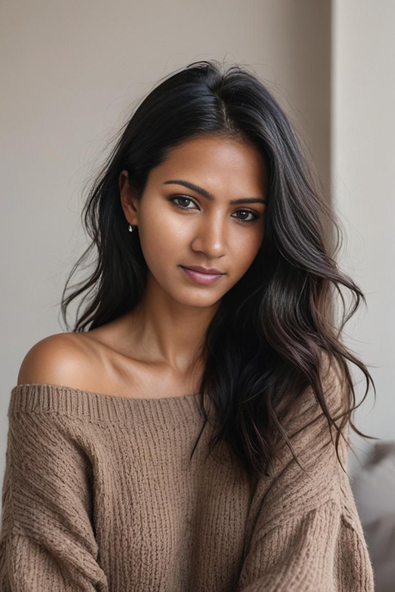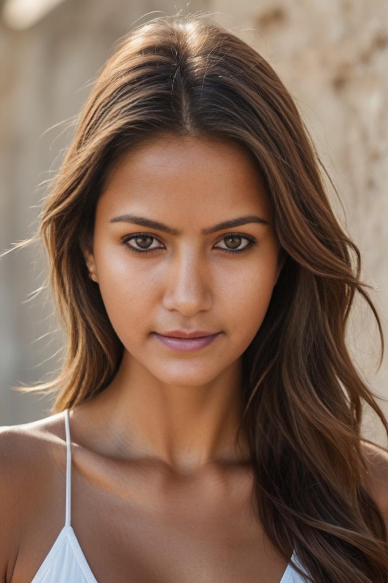 AI generated beautiful brown girl, she is a vision of warm, captivating beauty, with rich brown skin that seems to glow with a life of its own, inviting a lingering touch. There's a palpable, confident energy that radiates from her, an unapologetic allure that shines through her deep, knowing eyes and the subtle, provocative curve of her smile. Her every movement is a study in graceful sensuality, a natural and magnetic rhythm that suggests a deep, untamed passion simmering just beneath the surface, making her presence both utterly intoxicating and powerfully commanding.
