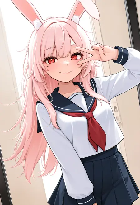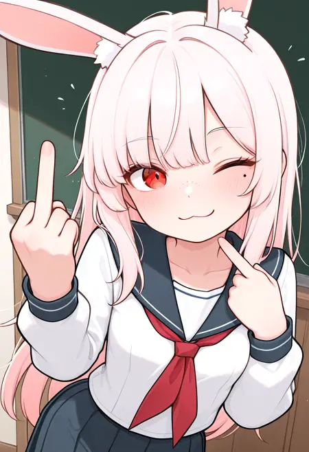 It's a simple character: A Bunny girl with pink hair, red eyes, beauty mark and more expressive.