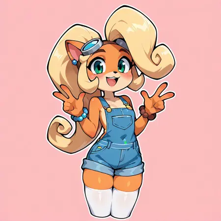 kempferzero, 1girl, solo, coco_bandicoot, furry, furry female, blonde hair, breasts, green eyes, long hair, ponytail, animal ears, colored skin, body fur,
