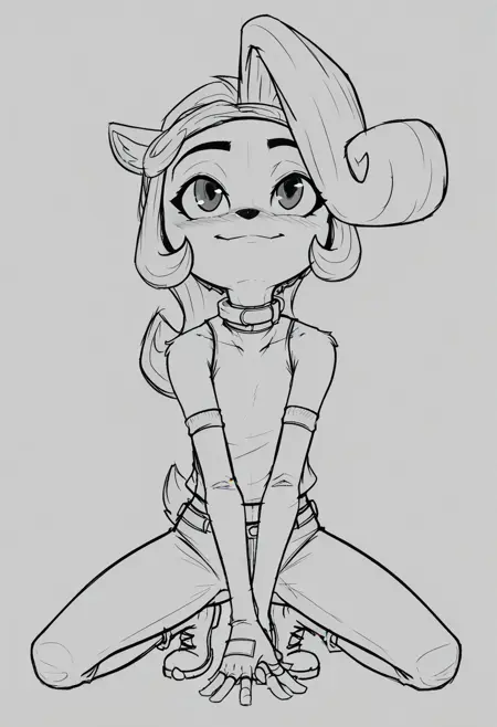 flo, solo, 1girl, solo, coco_bandicoot, furry, furry female, blonde hair, animal ears, breasts, long hair, animal nose, green eyes, ponytail, body fur, small breasts,