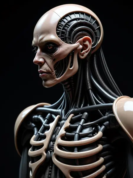Confui의 XenoSynth Bio Android. A111에서 생성된 데이터셋. png 파일에 포함된 프롬프트를 Confui에 드래그 앤 드롭하기만 하면 됩니다.