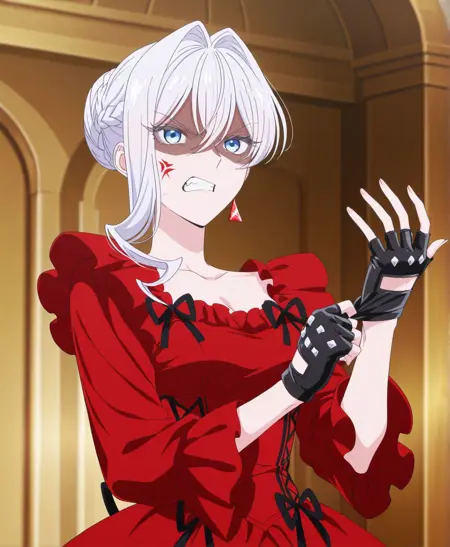 화난 표정, s_Scarlet, 그림자 진 얼굴, 빨간 드레스, 긴 소매,