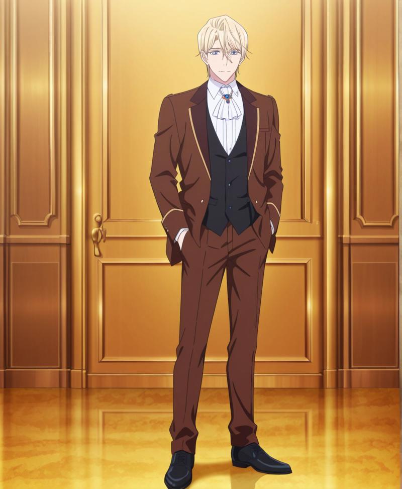 1boy,male focus,blonde hair, s_Julius, pants,standing, full body,