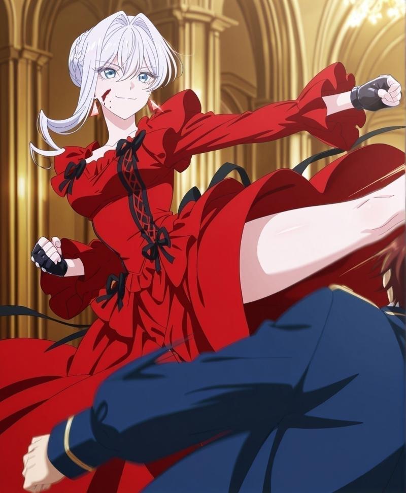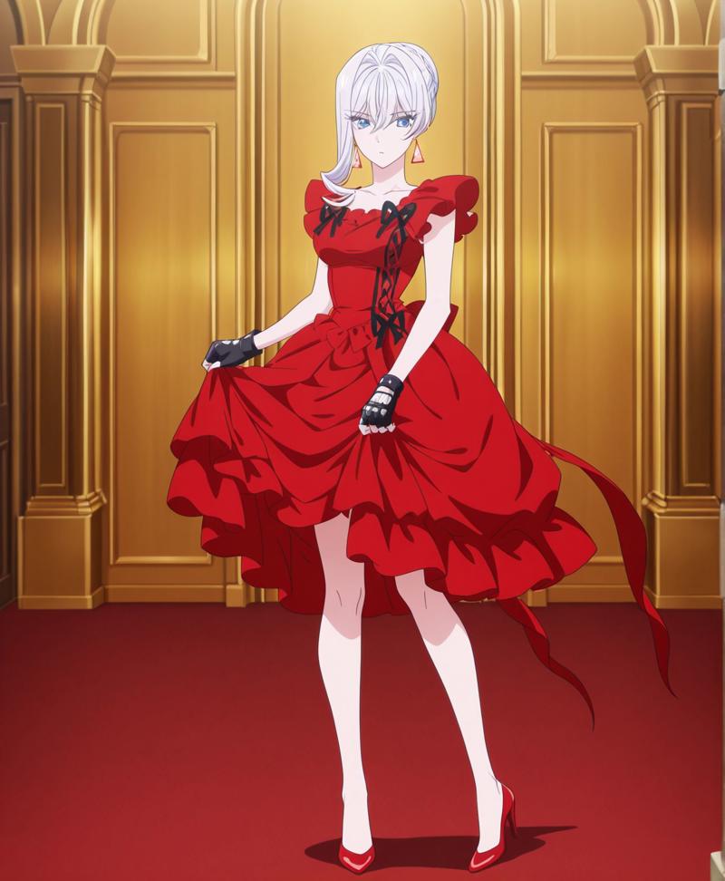 angry ,s_Scarlet,shaded face, red dress, long sleeves,