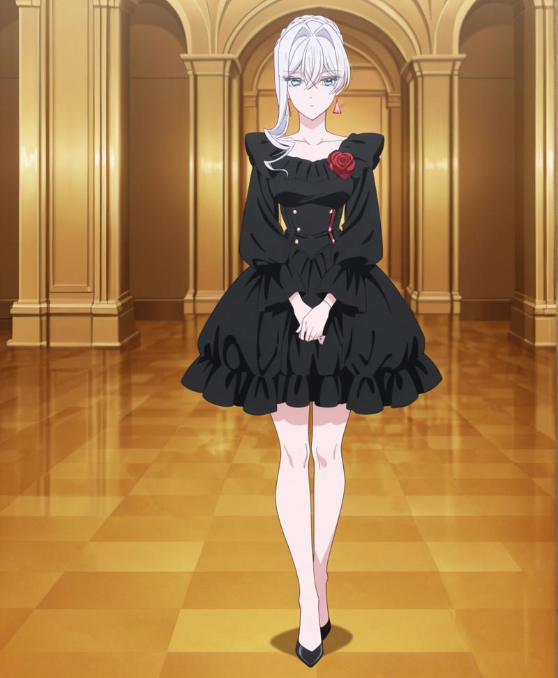 black dress,rose ,s_Scarlet,standing, skirt, full body,