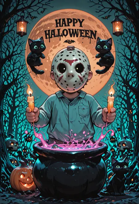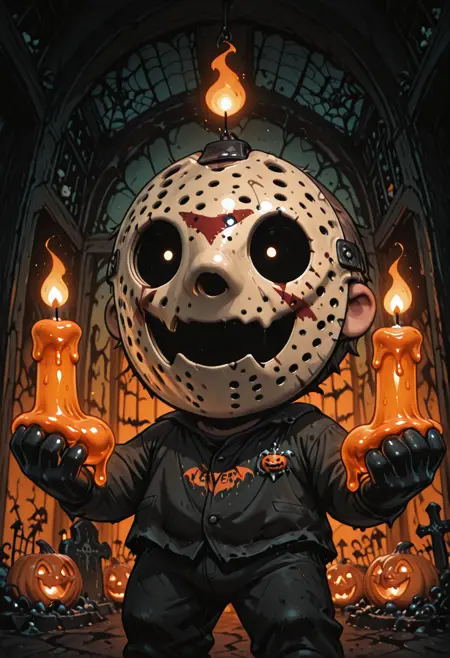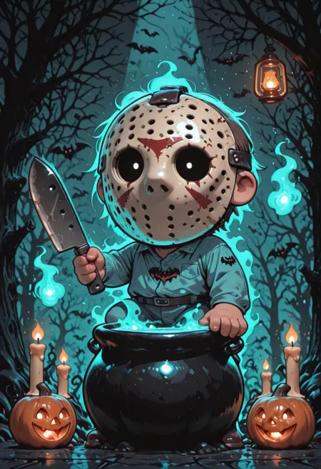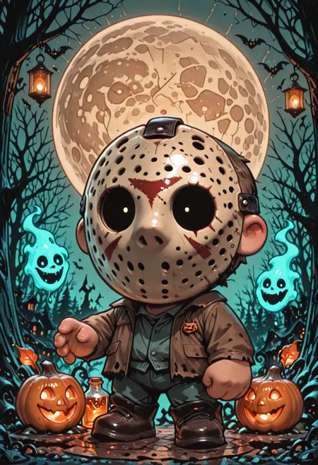 通过柔和的插画光影、富有表现力的五官和风格化细节,这个LoRA非常适合创作风格化肖像、收藏级艺术作品,以及受万圣节启发的创作,重新诠释恐怖史上最 iconic 的面孔……以 irresistibly 可爱的形式呈现。