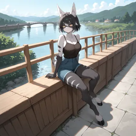 참고로, 팔, 가슴, 허벅지의 줄무늬는 일관성이 없을 수 있습니다. 이는 매우 복잡한 설정이므로 LoRA가 자주 제대로 생성하지 못합니다. 더 자세히 설명하는 태그를 추가해 실험해 보거나, inpainting으로 수동으로 수정해 보세요.