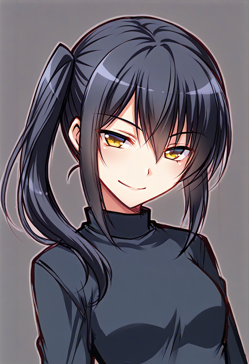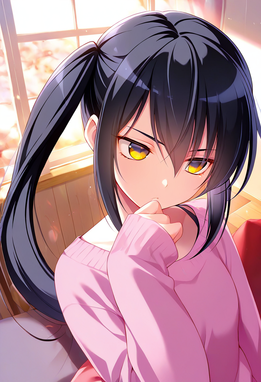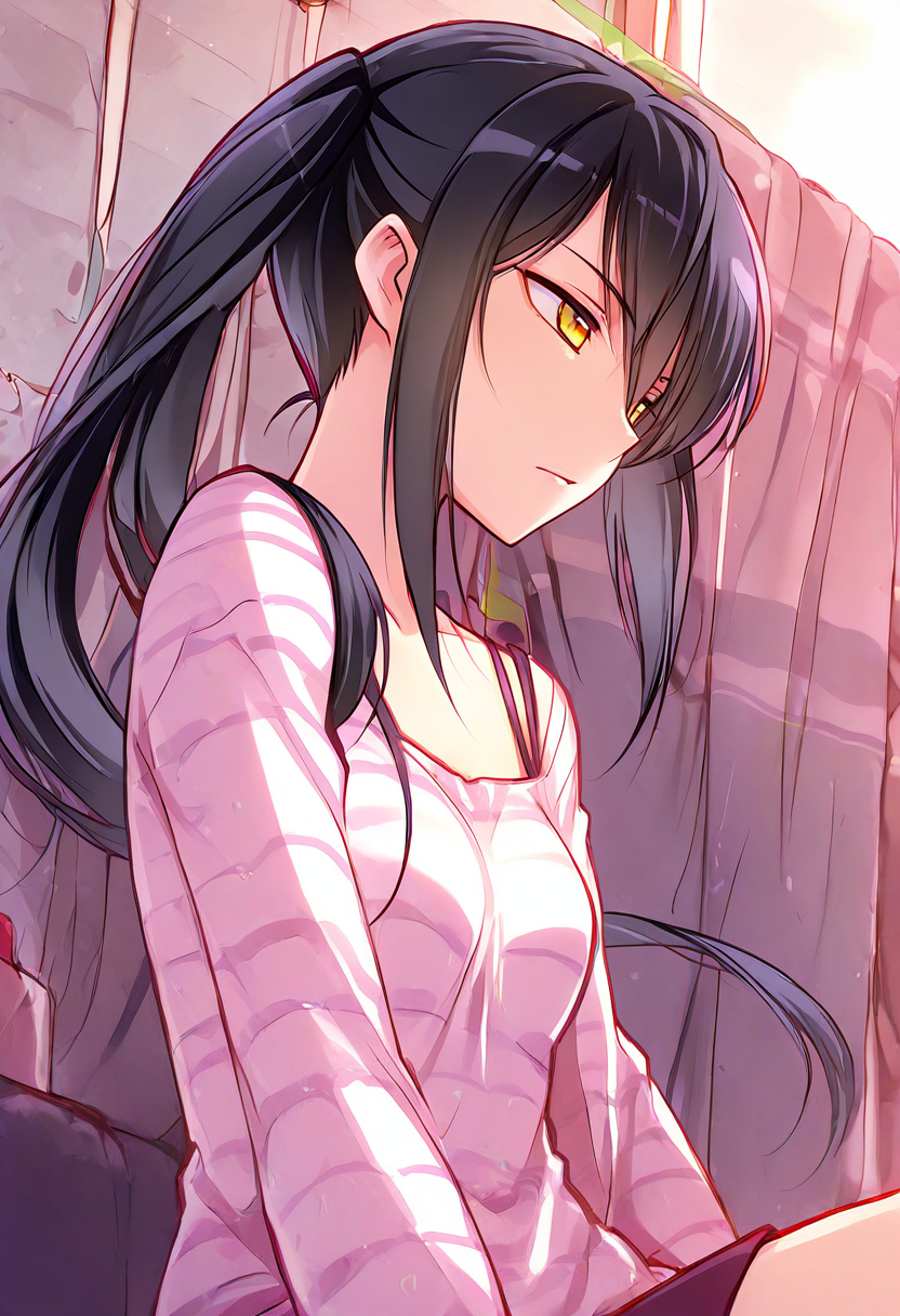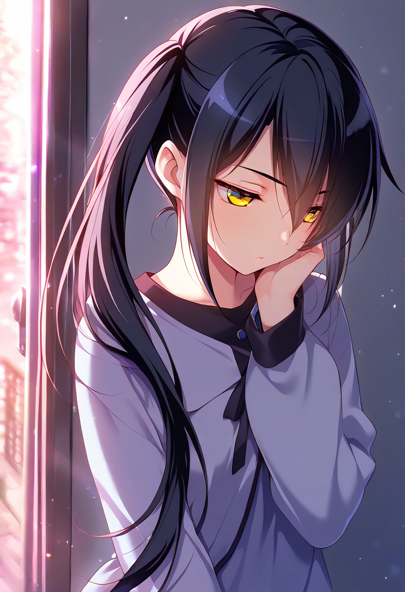 trigger words: inaba usagi, 1girl, black hair, long hair, uneven twintails, yellow eyes