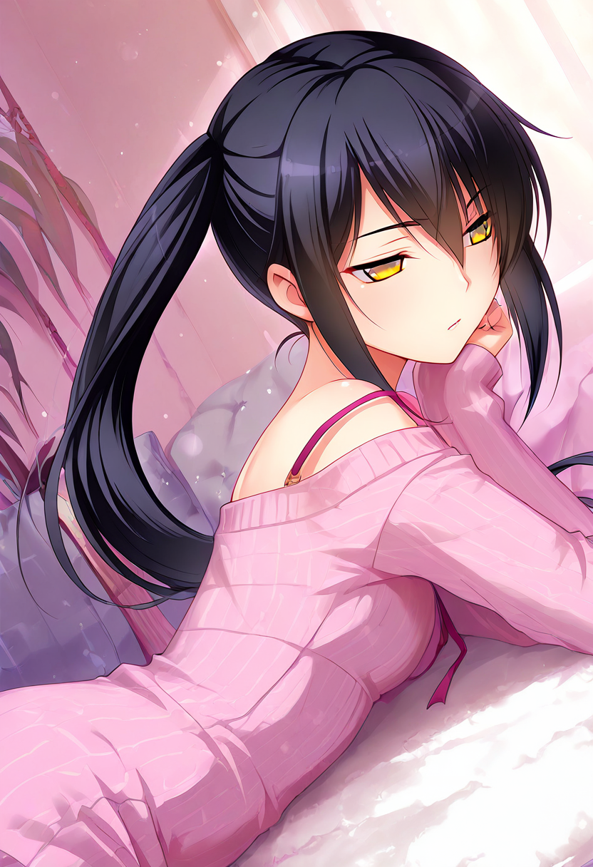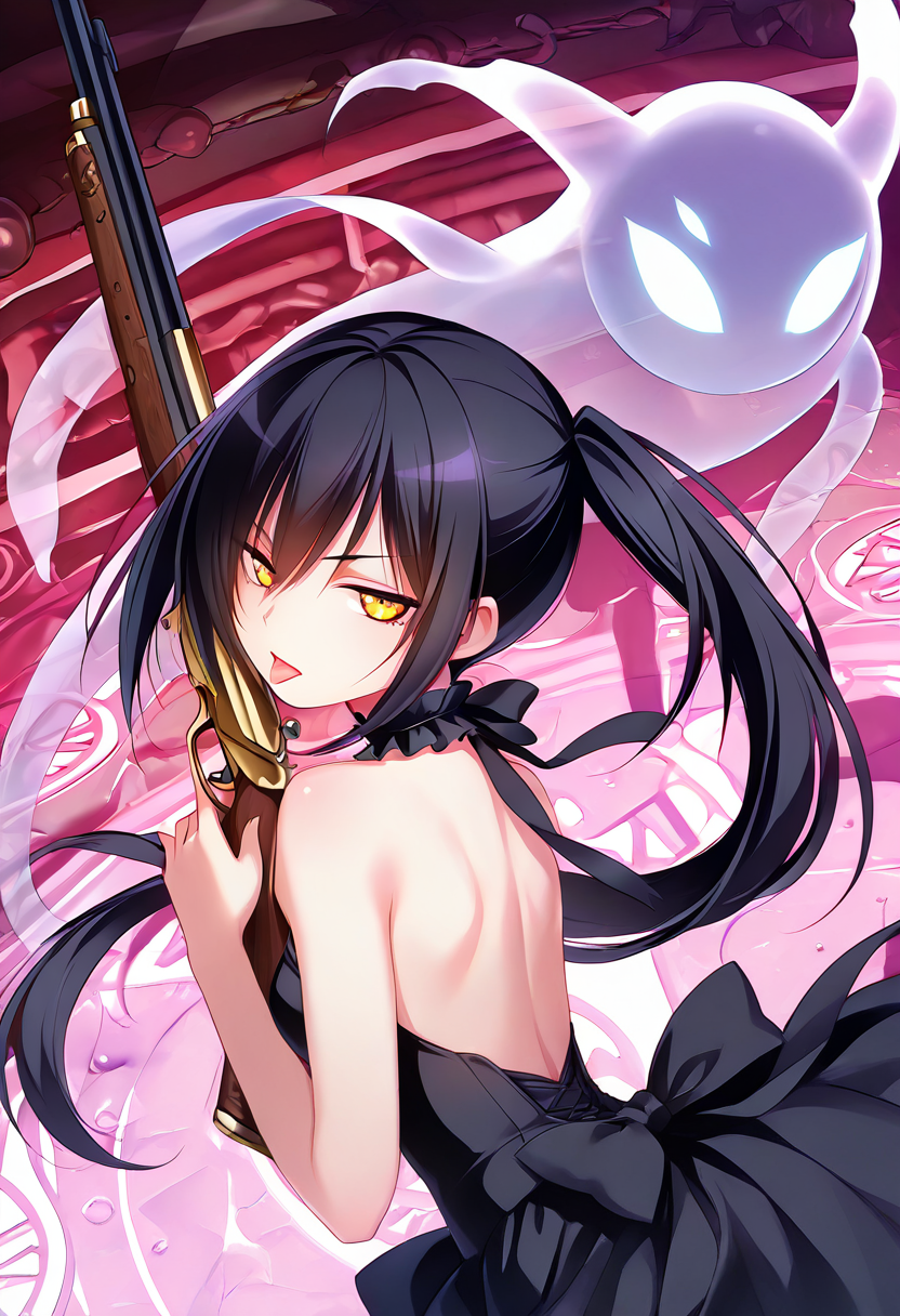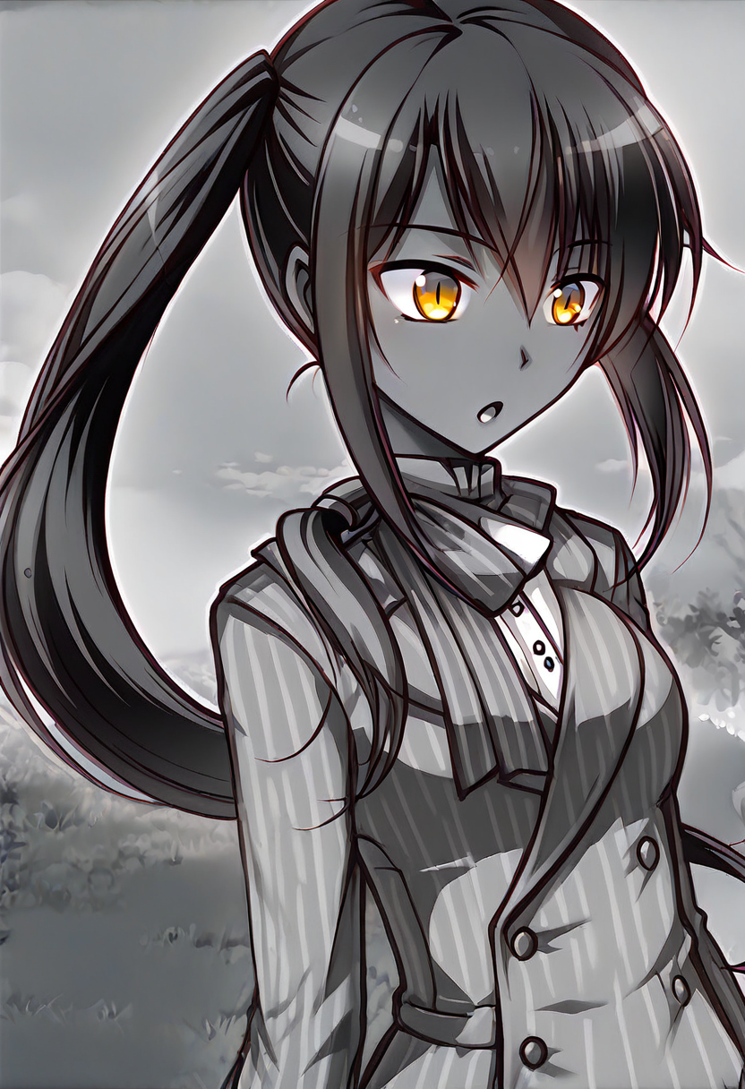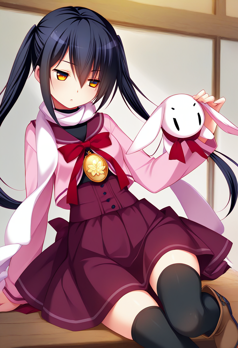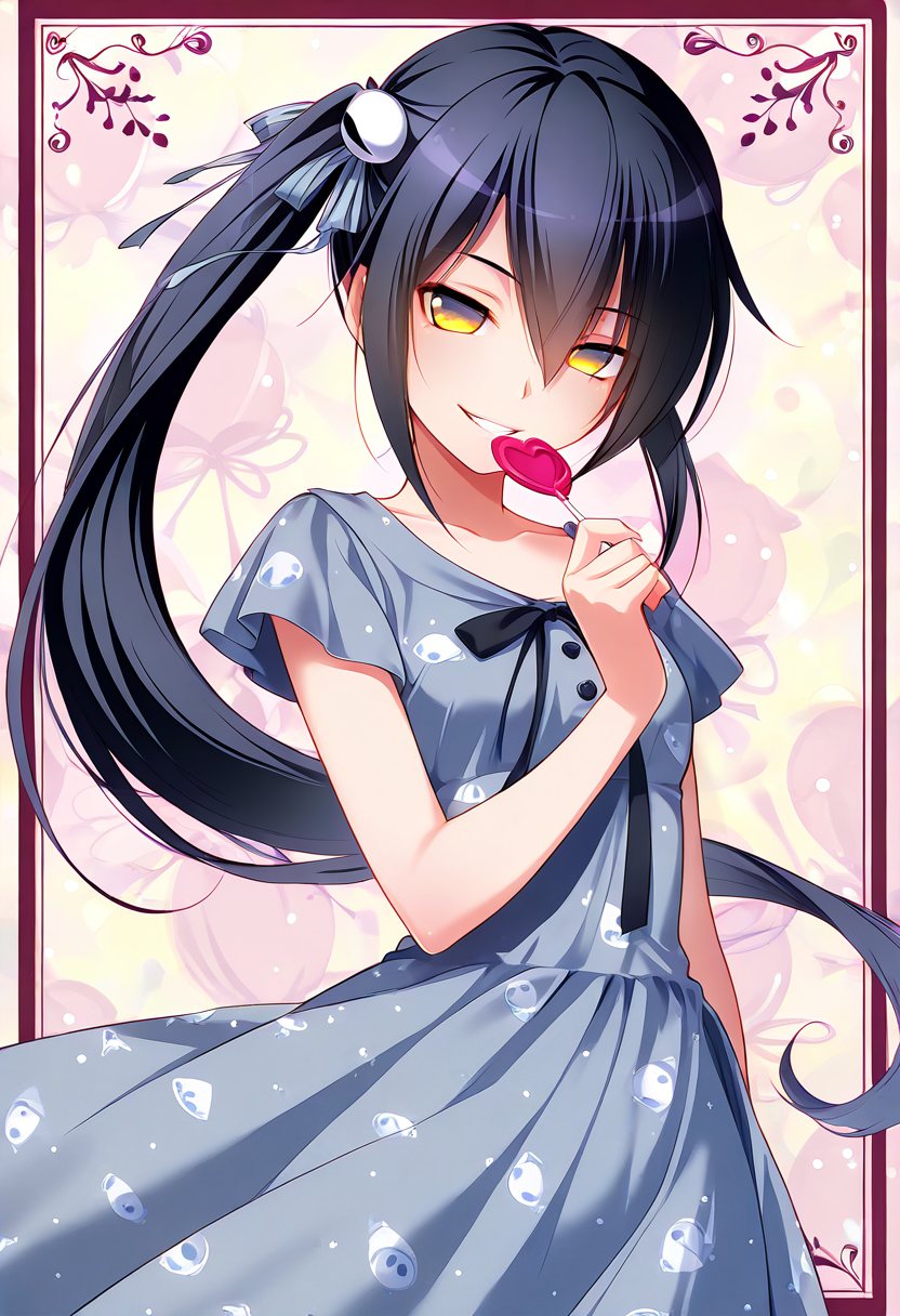 trigger words: inaba usagi, 1girl, black hair, long hair, uneven twintails, yellow eyes