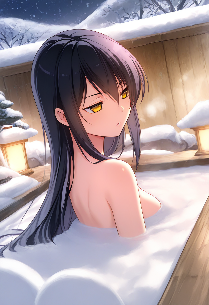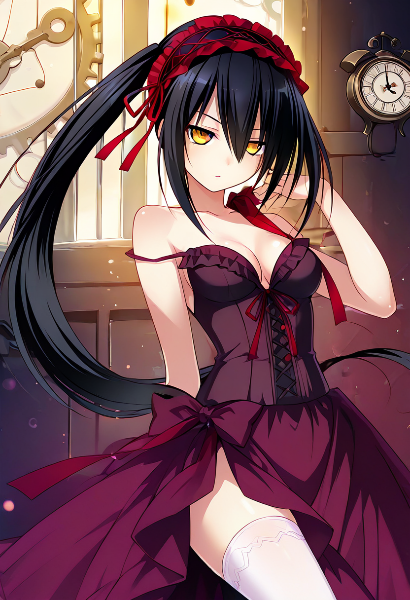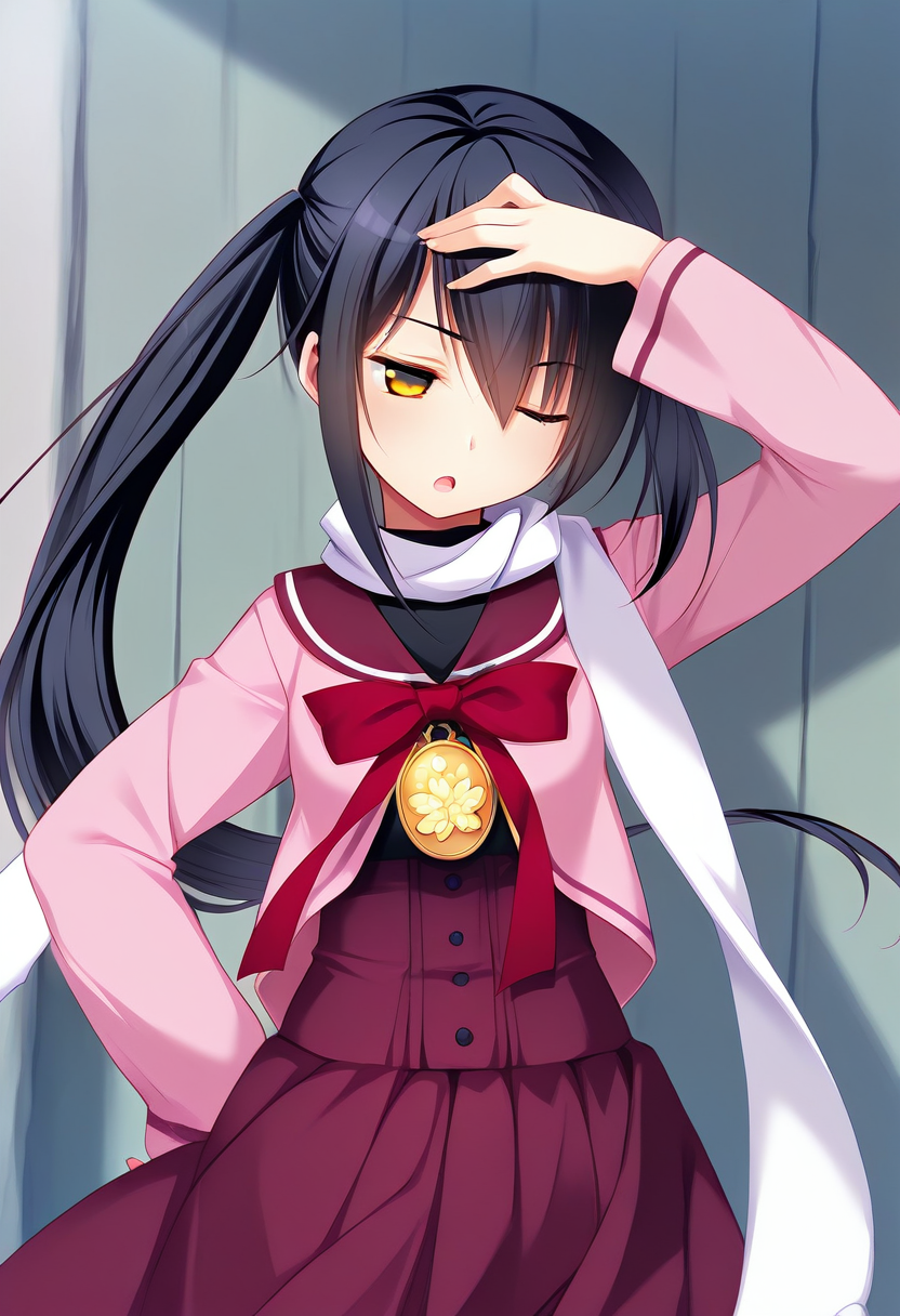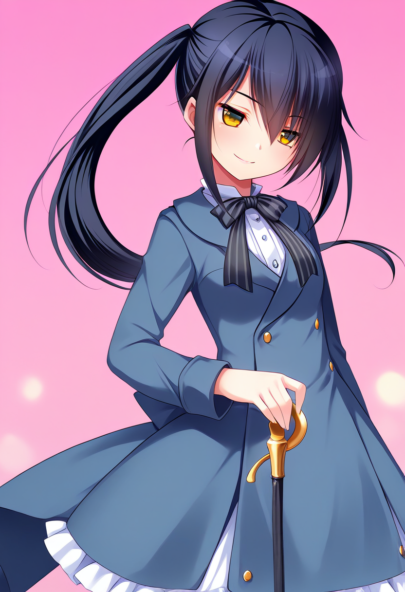 trigger words: inaba usagi, 1girl, black hair, long hair, uneven twintails, yellow eyes