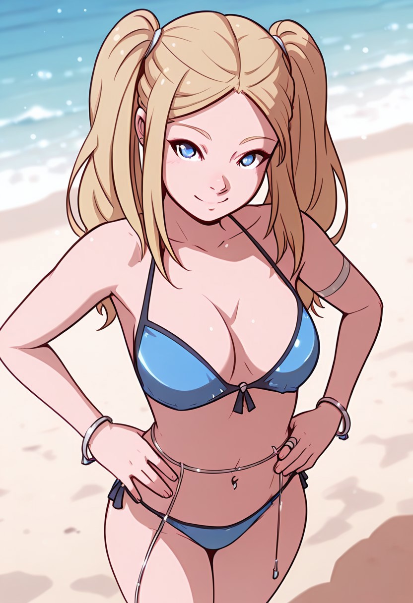 long hair, blonde hair, twintails, blue eyes,, bikini