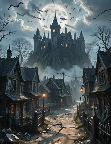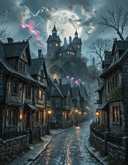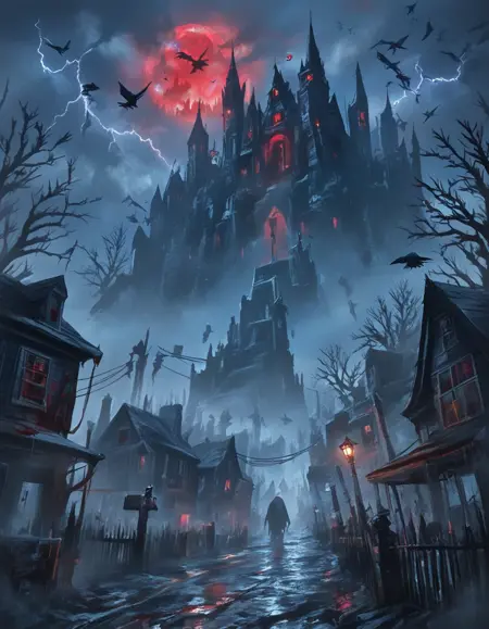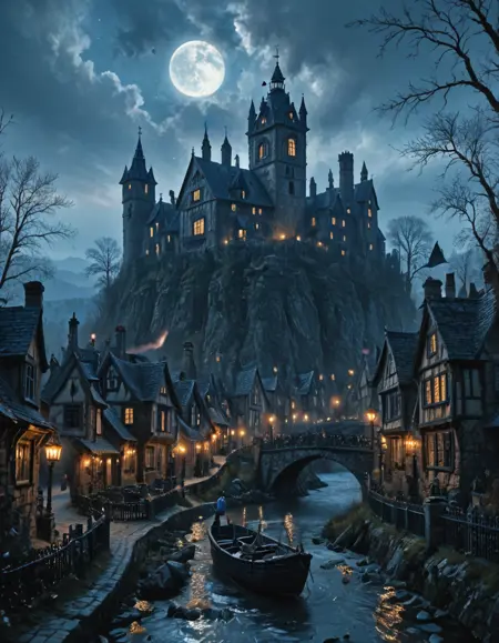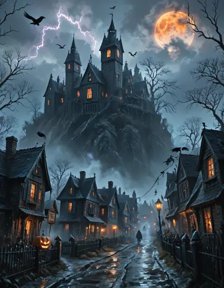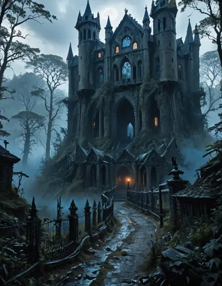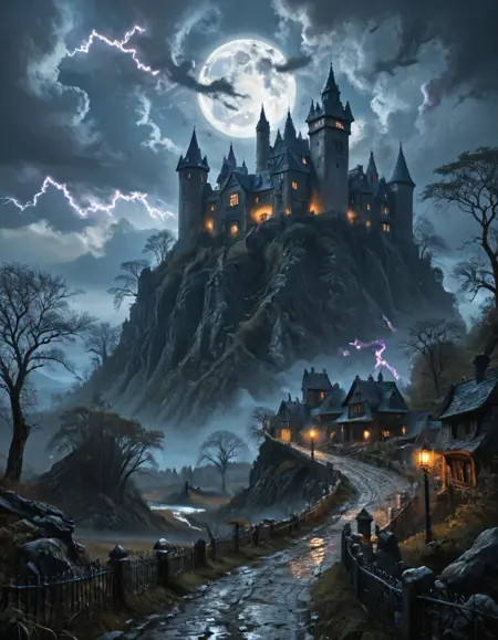 different settings (stormy, nightfall, moonlight, in the forest, with or without castle...)