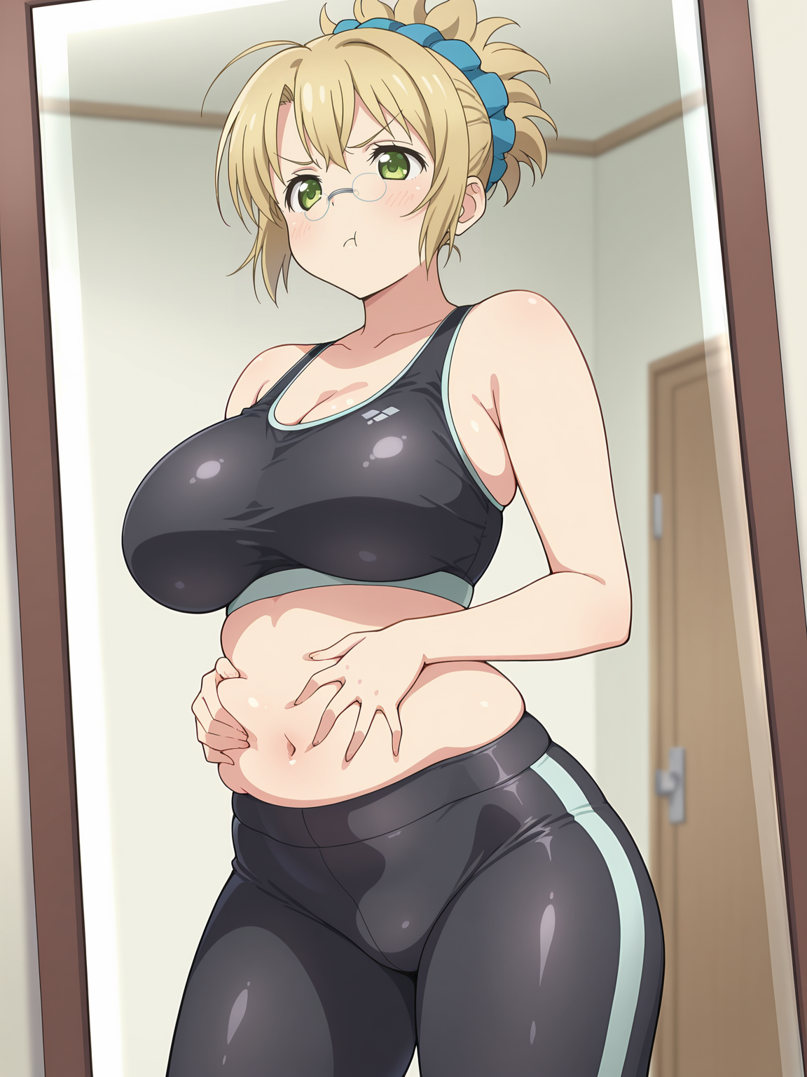 Some checkpoints don't always draw her glasses correctly in certain poses. Sometimes it might be worth adding more tags for them. The sports uniform can be combined with a swimsuit. An example of the tags can be seen in the preview.