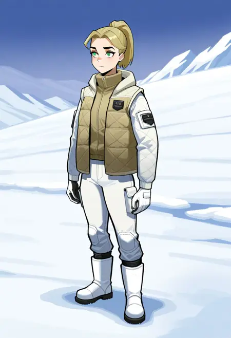 호스 복장: 겨울 재킷, 후드 베스트, 열린 베스트, 장갑, 스노우 바지, 스노우 부츠