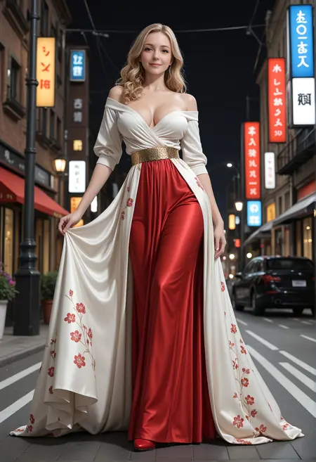2層構造のガウン(オーバースカートとベーススカート) をテーマにしたファッションショーからインスパイアされた。