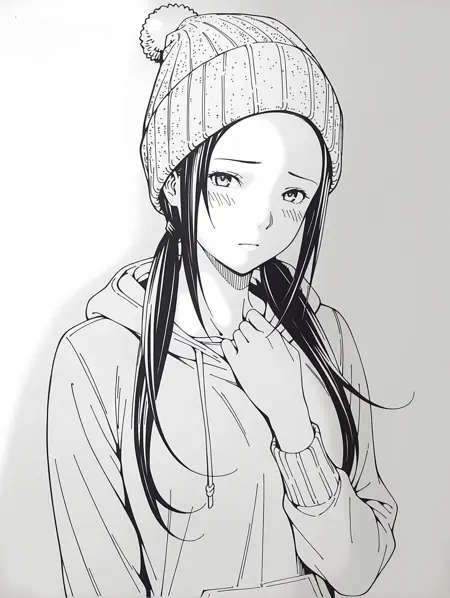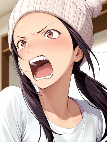 トリガーワード・n_yayoi,black hair,forehead,brown eyes,low twintails,