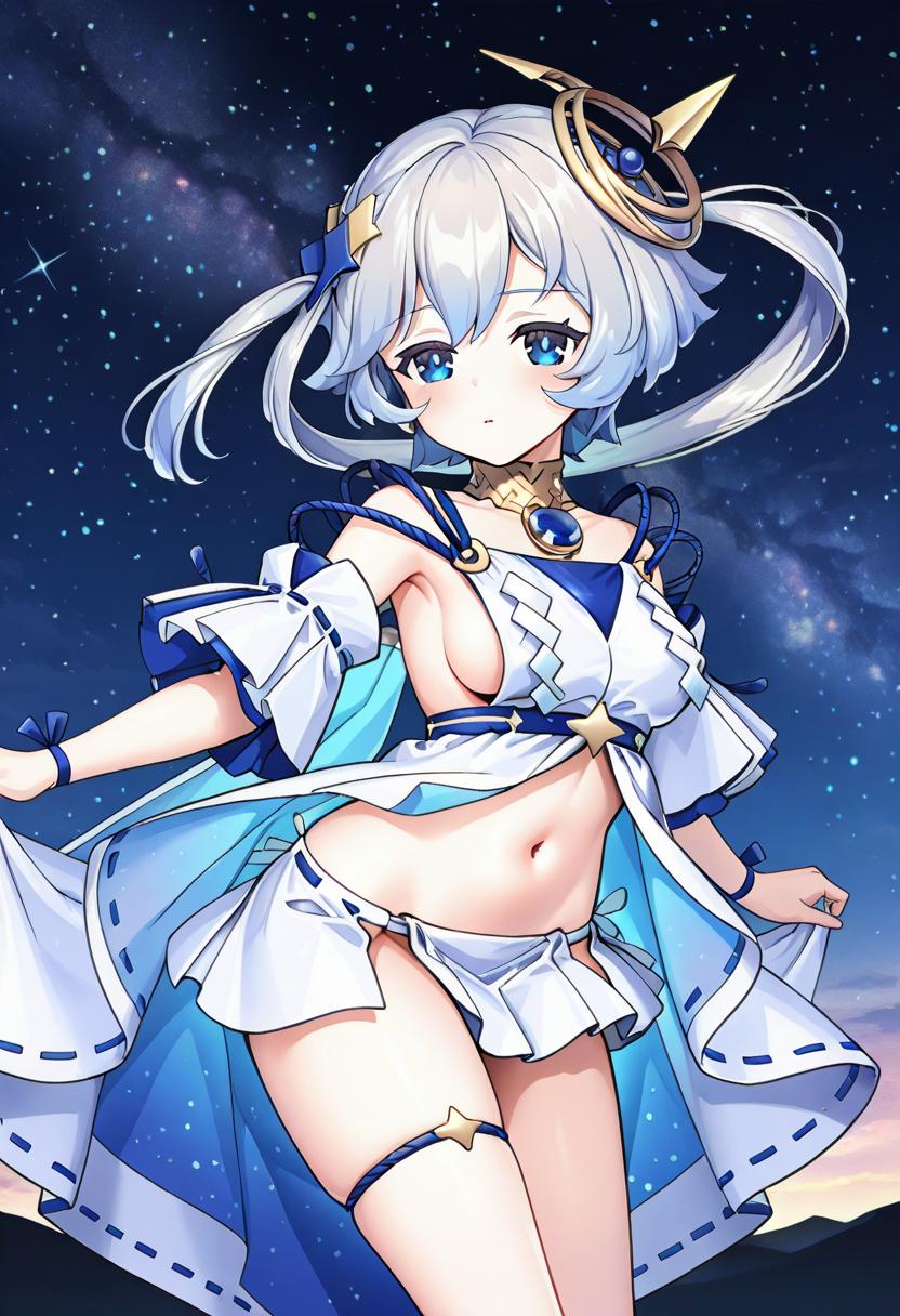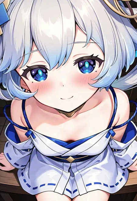 추가: 파란 눈, 흰 머리카락, 한쪽을 위로, 단일 머리 고리