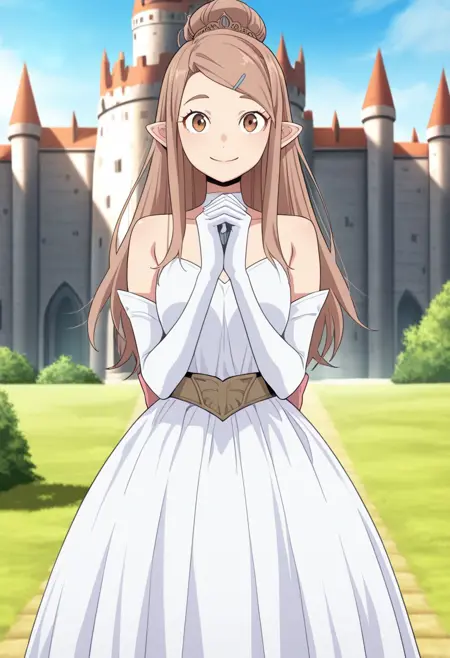 princess_outfit, dress, puffy sleeves, cleavage, elbow gloves