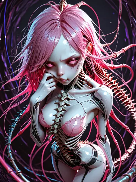 このモデルは、バイオパンクとドールファンタジーの外見の要素を組み合わせています。