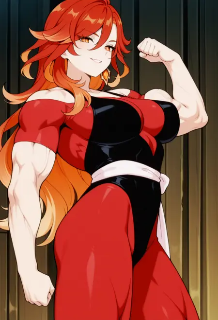 Why this outfit ? being a teenager this episode of ranma made me get muscular female fetish ( even if no muscular female are shown in it , but just the concept of woman heavy lifting and throwing objects did it) I kinda wanted to do it for a long time but as you can see it's a bit hard to describe it normally