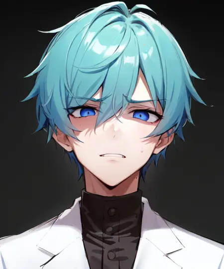 オプションのタグ:見ず嫌い、影付き顔、光る目、目の中の光、強い視線、笑み