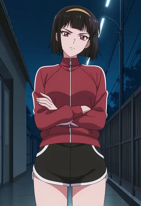 rhbdnaer,黑发,短发,波波头,红眼睛,黄色发带,成熟化,2000年代\(风格\),