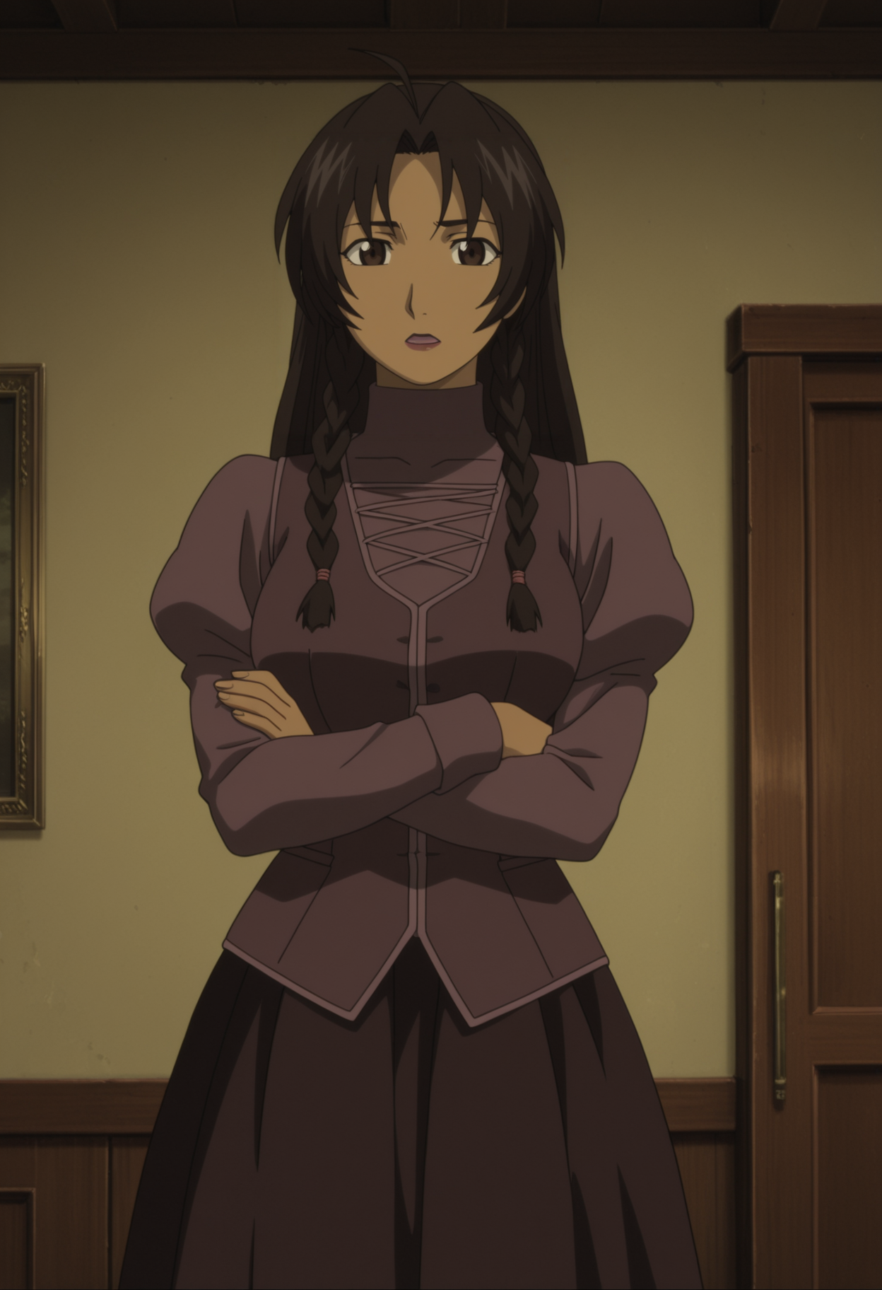 | トレーニングワード | 1girl,solo,mm,mature female,lon hair,twin braids,side briads,brown hair,brown eyes,lipstick,dark-skinned female,anime coloringコピーしました! main dress,necklace,neck ring,bracelet,short sleevesコピーしました! puffy sleeves dress,puffy sleeves,long sleeves,vest,turtleneck,long skirtコピーしました! grey jacket,collared jacket,black skirt,long skirt,ankletコピーしました! frilled shirt,frilled skirt,white shirt,white skirt,long skirtコピーしました! |