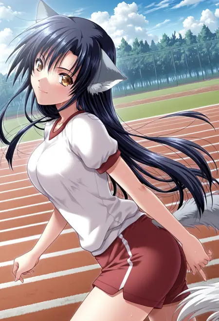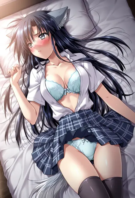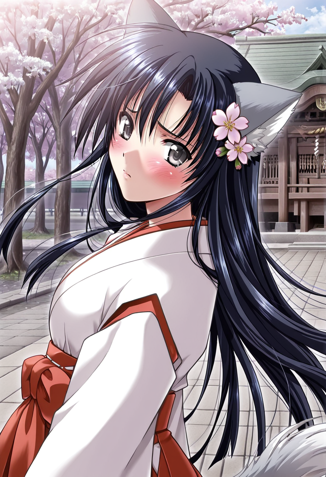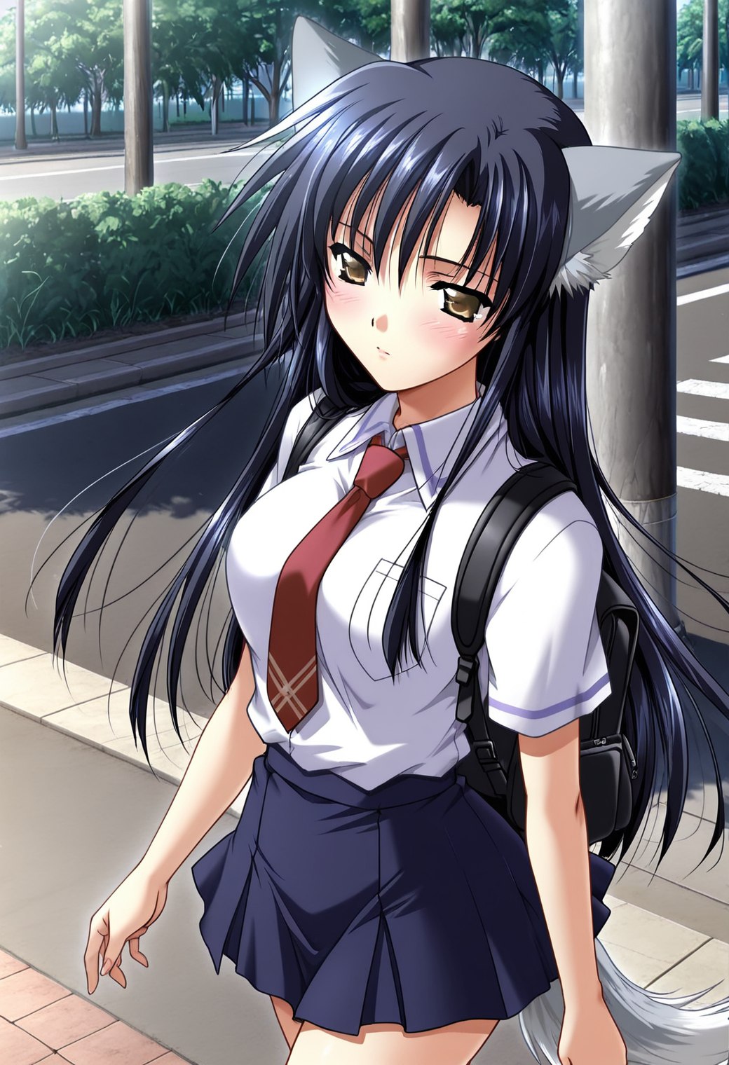 azusaokaeshi, long hair, animal ears, wolf tail,