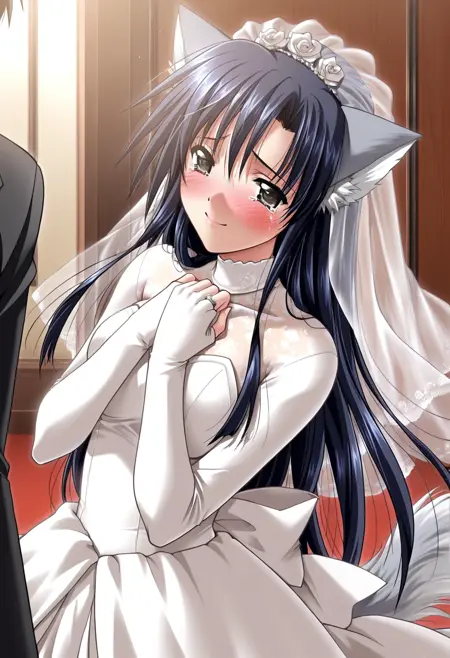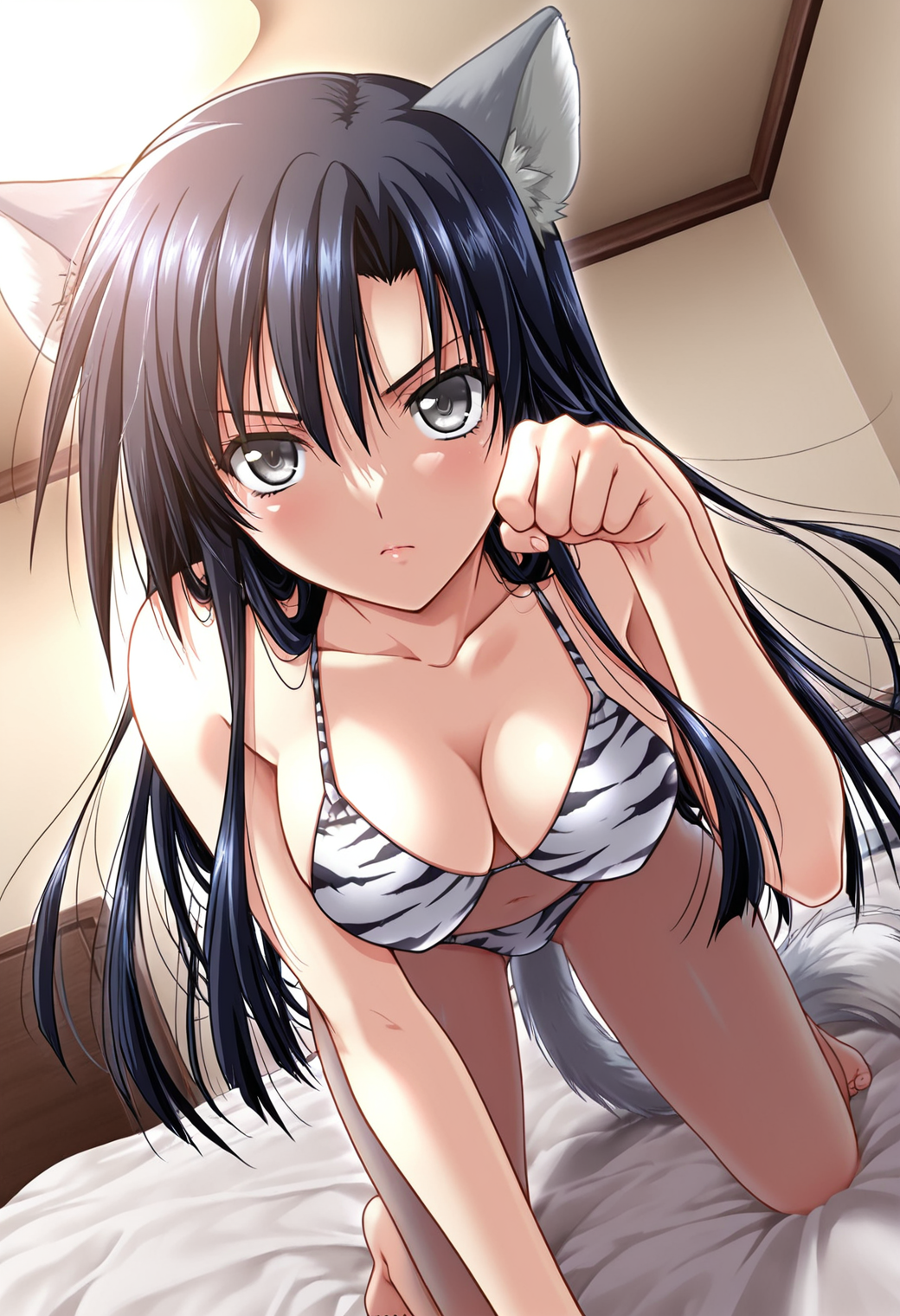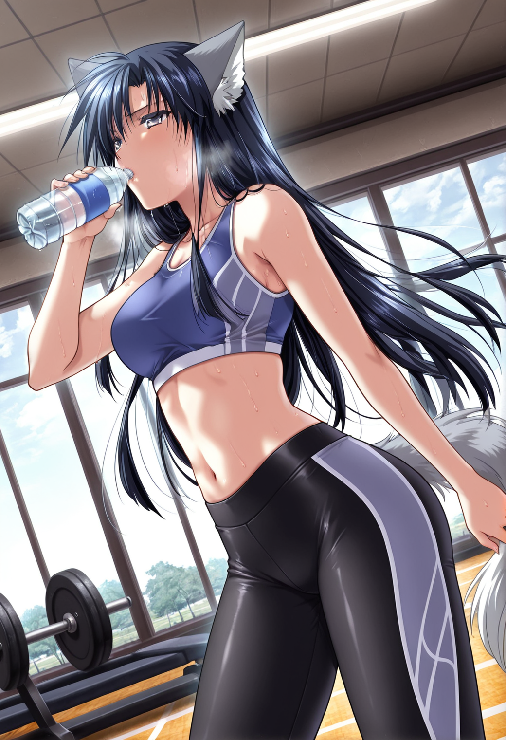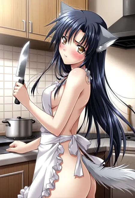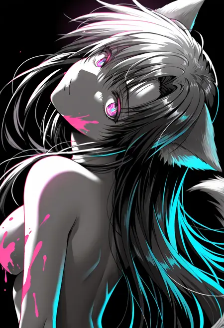azusaokaeshi, long hair, animal ears, wolf tail,