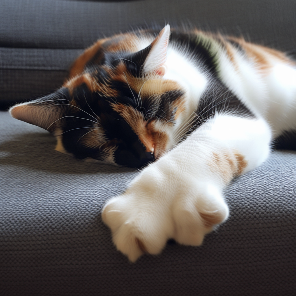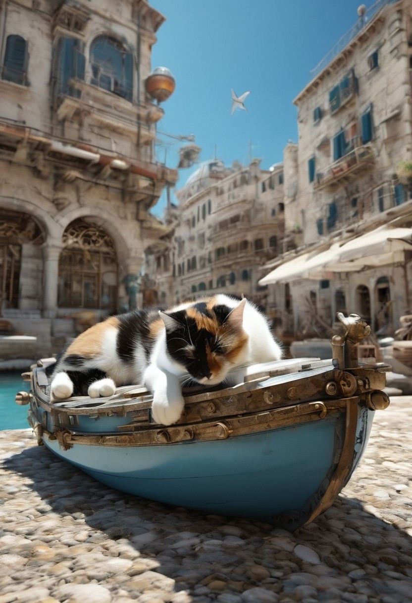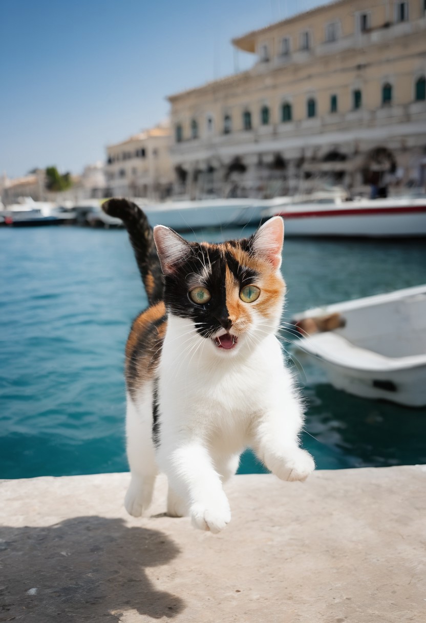 세 가지 색상의 고양이를 묘사하며, LoRA: C4t3c0l0r을 참고하세요.