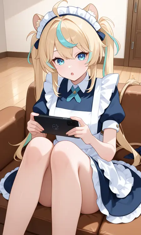 shido lio, lio ma1d, lion ears, long hair, twintails, maid headdress, maid, maid apron, puffy short sleeves, lion tail, tail bow⚓セーラー衣装:
