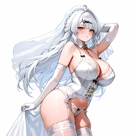 - 无外套触发词:YixuanWithoutCoat, 1girl, 大乳房, 黑色过膝袜, 黑色手套, 深V领, 黄色眼睛, 长发, 单侧过膝袜, 无指手套, 白发, 裸露肩膀, 黑色紧身衣, 不对称手套, 刘海, 大腿, 肘部手套, 发饰, 皮肤凹陷, 大腿间隙, 单侧肘部手套, 大腿绑带, 吊袜带
