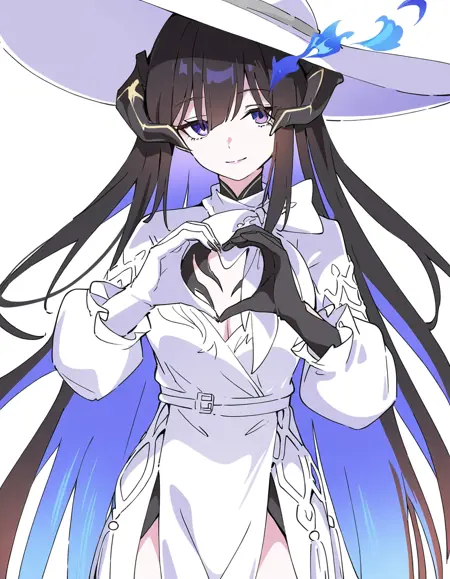 black glove,long fingernails,long sleeves,horns,white glove,white dress,white headwear,