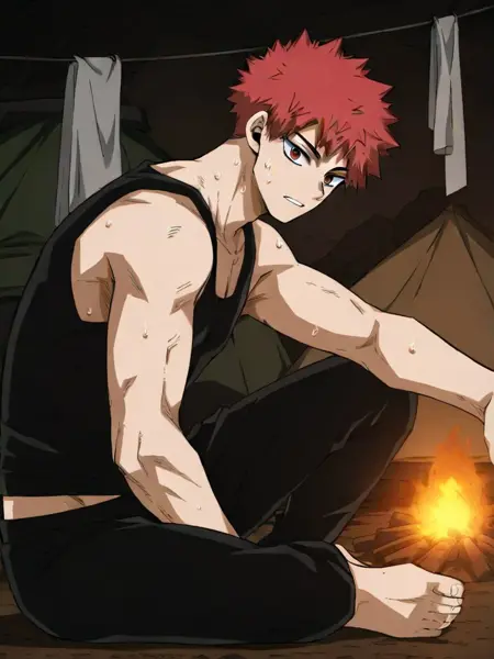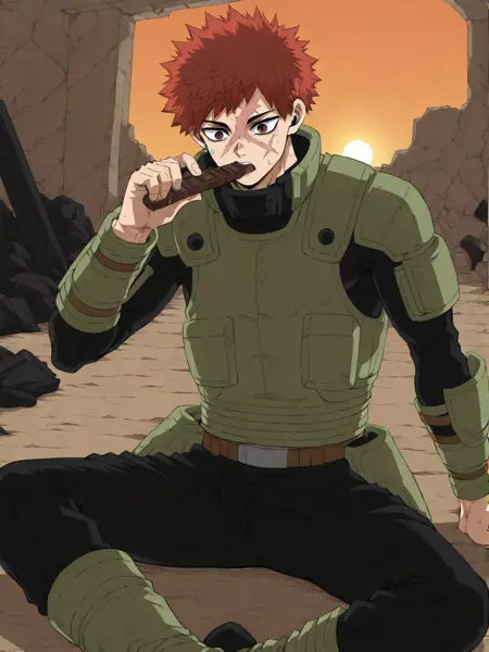 트리거 단어: kudo, 1boy, 녹색 바지, 갑옷, 흉터, 얼굴 흉터