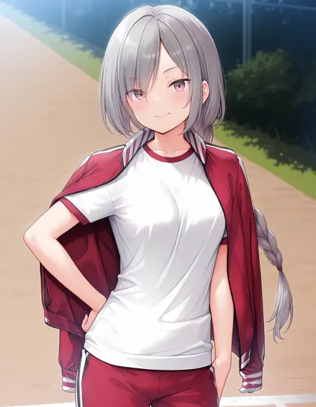 服装03,运动服,Otomeki运动服,夹克,敞开式夹克,长袖夹克,夹克搭在肩上,红色夹克,衬衫,T恤,白衬衫,短袖衬衫,裤子,红色裤子,袜子,白袜子,鞋子,运动鞋,