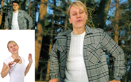 把图1中人物的表情换成图2中人物的表情,眼神和脸的方向均与图2中的人物一致。