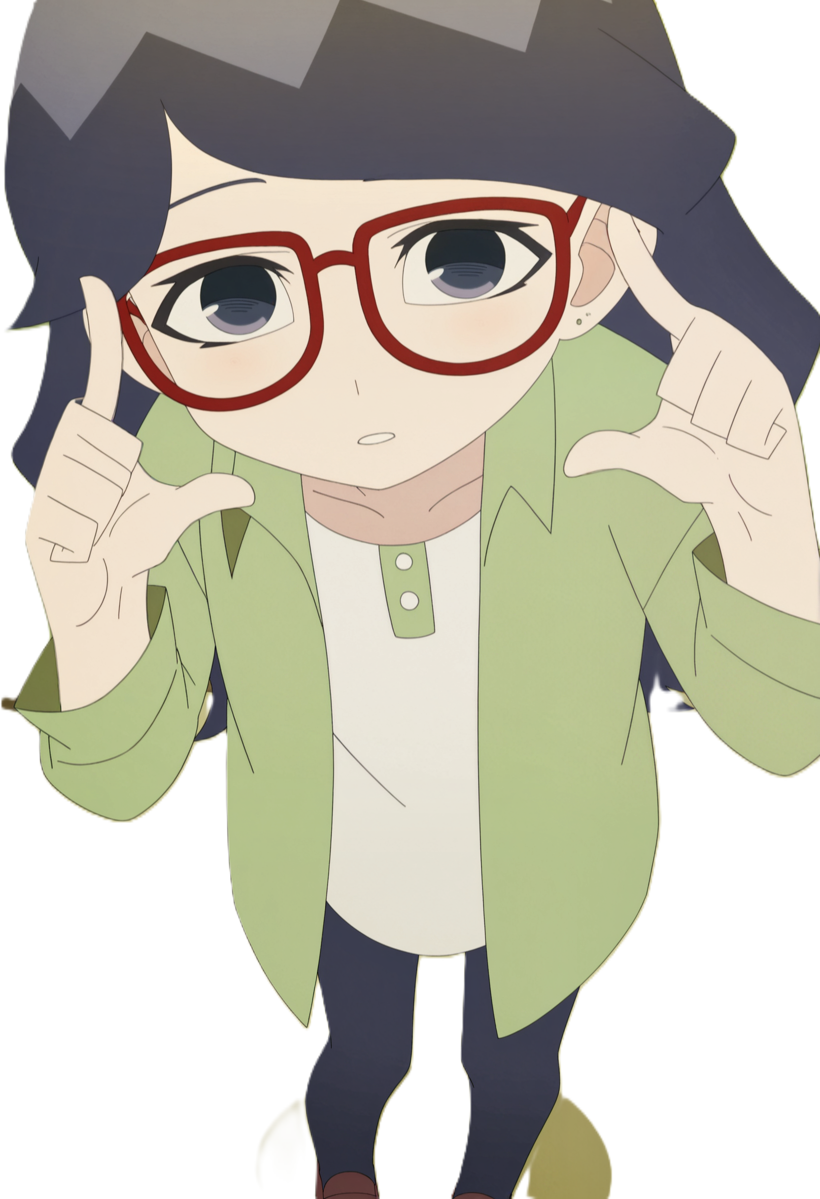 TaoziMa,black eyes,black hair,long hair,earrings,red-framed eyewear,collared shirt,green jacket,