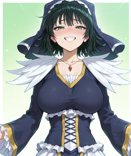 长袖、连衣裙、荷叶边、面纱、修女、修女服、宽袖、蓝色连衣裙、荷叶边袖子,