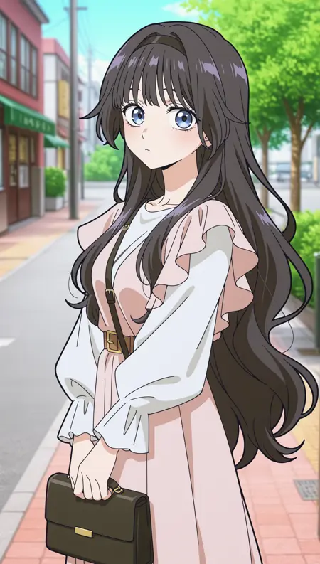 Trigger Words Optionnal: school uniform, brown footwear, pantyhose, black hairband, ribbon