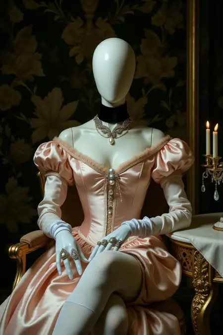 哥特式奢华:🏰 幽灵般的舞厅、摇曳的烛光、维多利亚时代的颓败与悲剧浪漫。一袭蕾丝与丝绒的幽灵。