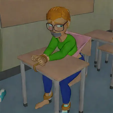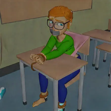 你的模型被绑住并堵住嘴巴,坐在椅子上接受“原子内裤”惩罚的姿态。