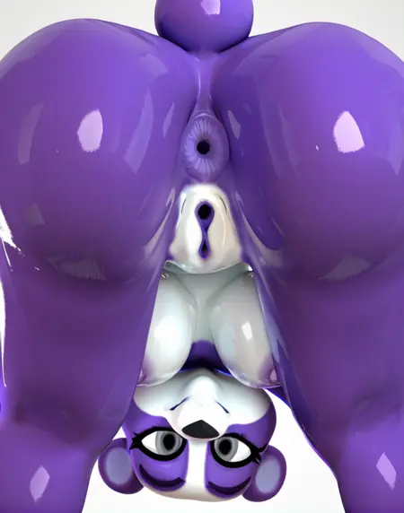 PennyLingGrox01d, 3d, panda, furry, furry female, futanari, penis, breasts, 1girl, panda ears, black nose, two-tone fur, violet and white fur, purple eyes, silver eyes, stubby tail, makeup