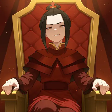 azula_atla, black hair, topknot, hair ornament, sidelocks, brown eyes, azula_uniform
