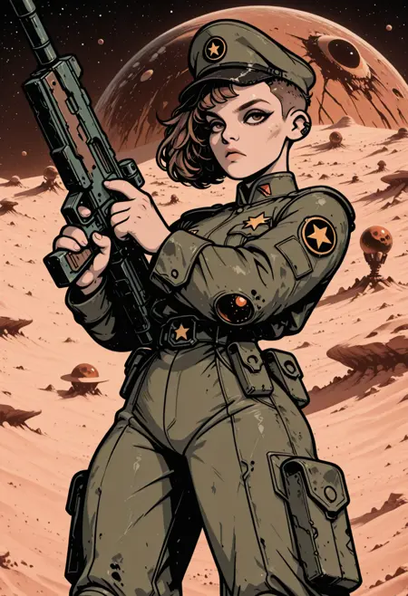 这是一个风格 LoRA,看起来有点像朋克风格的流行漫画风格,适用于不同的氛围和主题。